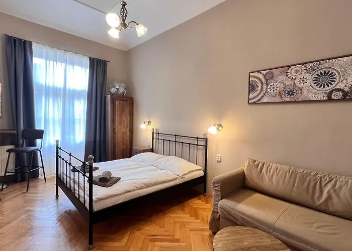 تقع Old Town - Dusni Apartments براغ المكونة من 6 غرفة على بعد أقل من 8 دقيقة سيرًا على الأقدام من ميدان ريبابليك، وتضمّ موقف السيارات العام لأولئك الذين يسافرون بالسيارة. تقع الشقة في منطقة ويست إند، وتوفّر الوصول إلى ساعة براغ الفلكية على بعد 300 متر فقط.